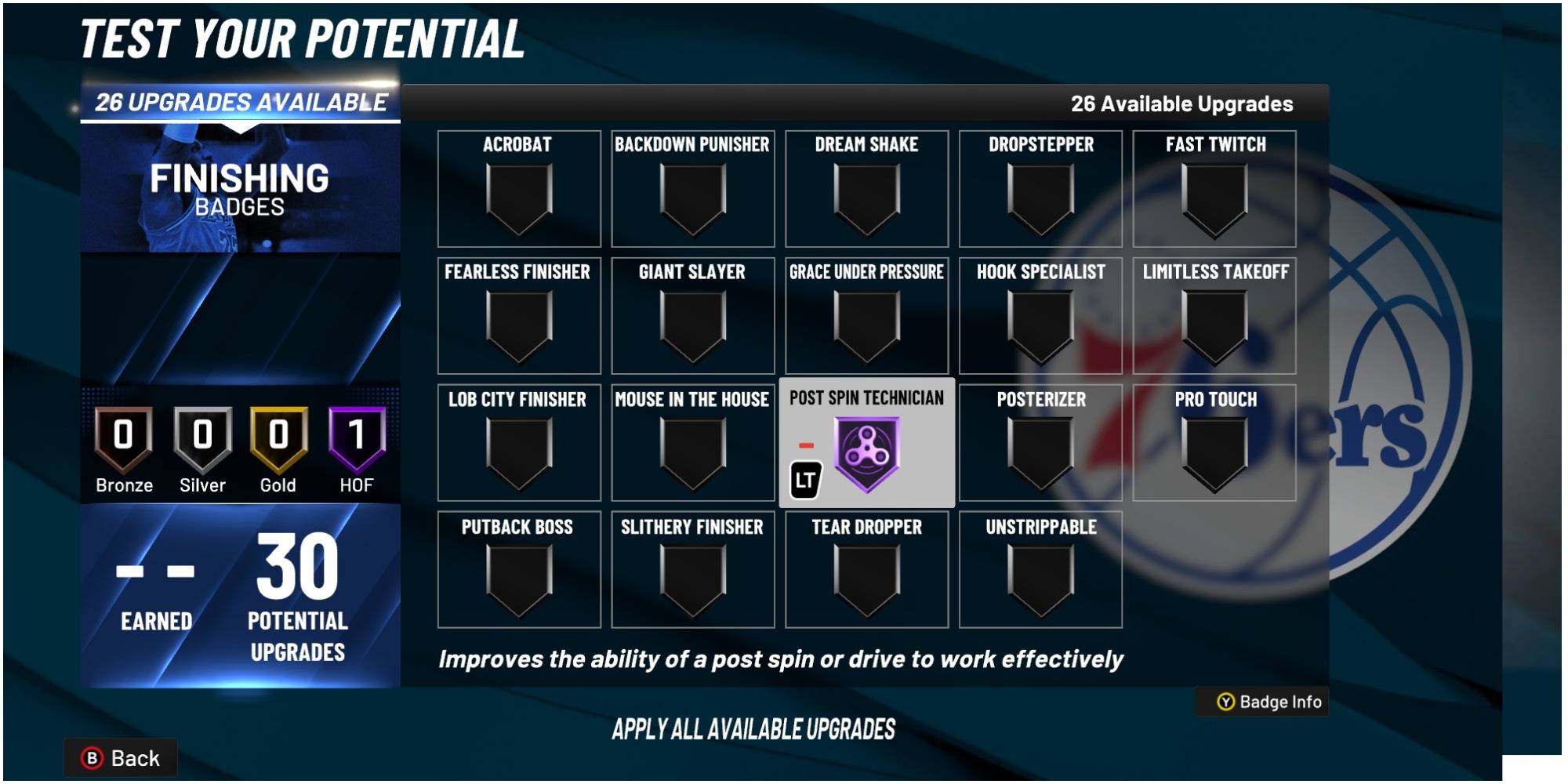 The best interior defense badge that will make opponents miss shots if you are in the general area. Spin half-spin hop step. While the thundering dunks are very exciting some of the best finishers at the rim are actually super-talented guards that will opt for a layup in every situation.